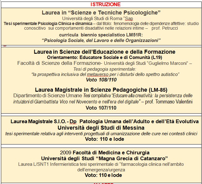 Direttore Scientifico e Legale Rappresentante servizi per la famiglia, l'inclusione e reinserimento sociale – sportello di supporto psicologico -progettazione e gestore di interventi didattico-educativi - Formazione professionale – Servizi socio-sanitari - Elpa Medical APS Taurianova (RC)– ANAS Italia
